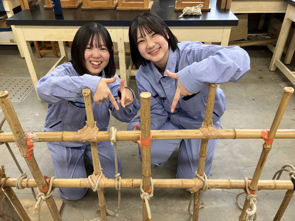 造園緑地科では、2~3学期にかけて造園作業に必要なロープワークの技術を学んでおり3種類の結束方法を習得しています。技術を習得することによって、冬場の雪囲いや雪吊り、四ツ目垣等の竹垣の結束などができるようになります!