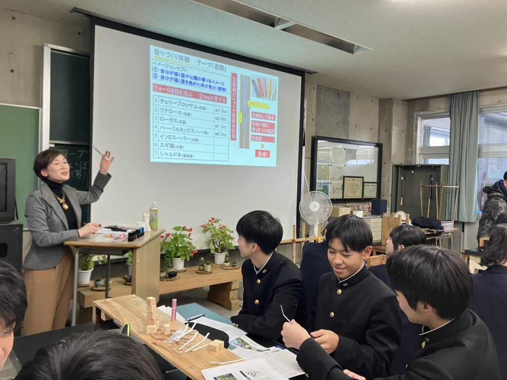森林面積の多い秋田県がカーボンニュートラルを実践していくことの重要性、AIを活用した木材研究の発展性、建築・設計を元にした地域づくりの姿、そして私たちの生活と香りの関わりの深さなど、普段の授業では学べない知識と経験を得ることができました。