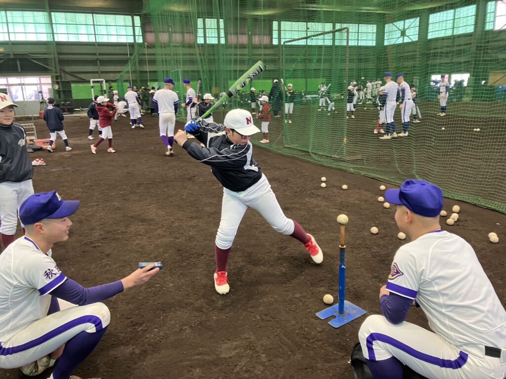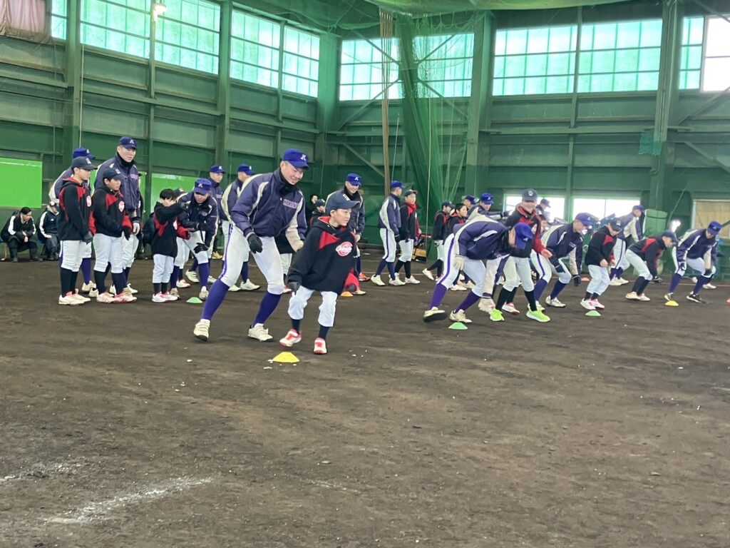 1月18日(日)に旭川小野球スポーツ少年団・仁井田小野球スポーツ少年団、1月25日(日)に追分小スポーツ少年団の皆様、計約70名を招いて本校野球部主催「野球教室」を開催しました。